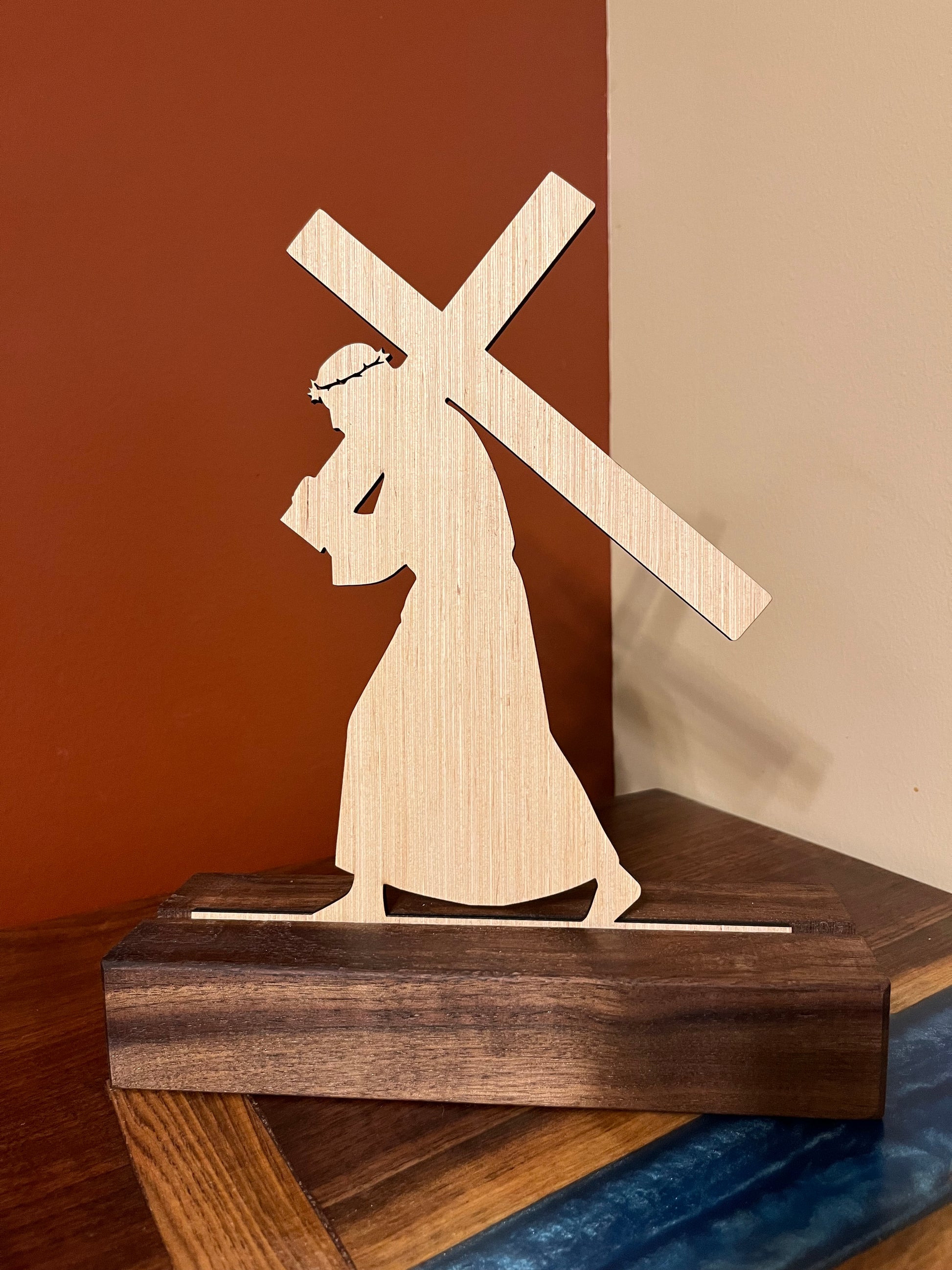 Walk through the most meaningful week in Christian history with this handcrafted 8‑day Holy Week display set. Each silhouette is laser‑cut and designed to highlight a key moment—from Palm Sunday to Resurrection Morning. The pieces rest in a solid black walnut stand, creating a reverent, timeless centerpiece for your home, church, or family devotional time.